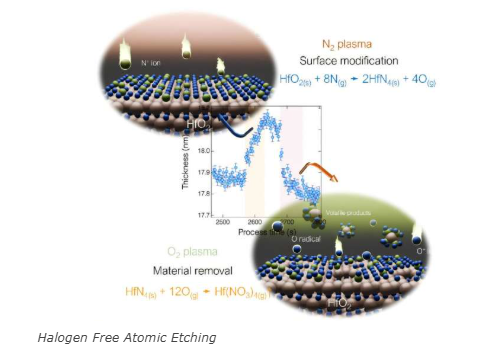 Ko te roopu, i arahina e te Hsiao University a Nagoya me Masaru Hori i te mahi tahi me te mahi huringa e rua-taahiraa hei whakakapi i nga hagose me te hauota.I te wahanga tuatahi, ka pania e ia nga ngota i te mata HFO2, te hauota o te hau ki te kiriata.I te tuarua, ko te plasma o2 ka wehe i te paparanga hauota-hauota ma te tauhohenga whaiaro.Ko ia huringa ka tango noa i te 0.023 noa ki te 0.107 nanomters o te rauemi, whakahoutia te tika subiomic.