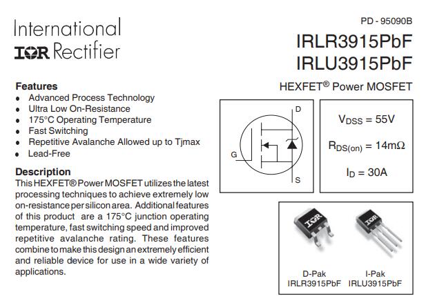 HomeNewsIrlu3915pbf Hexfet® Te mana Mosfet 55V Kotahi N-Channel Hexfet Mana Tosfet i roto i te kete I-Pak